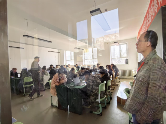 (图为教务处处长李彬、纪委办公室副主任侯广文巡视考场)