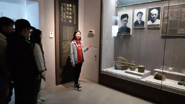 参观中,部分学生代表经过纪念馆讲解员的短暂培训和指导后,也参与了部分革命历史事迹的讲解。