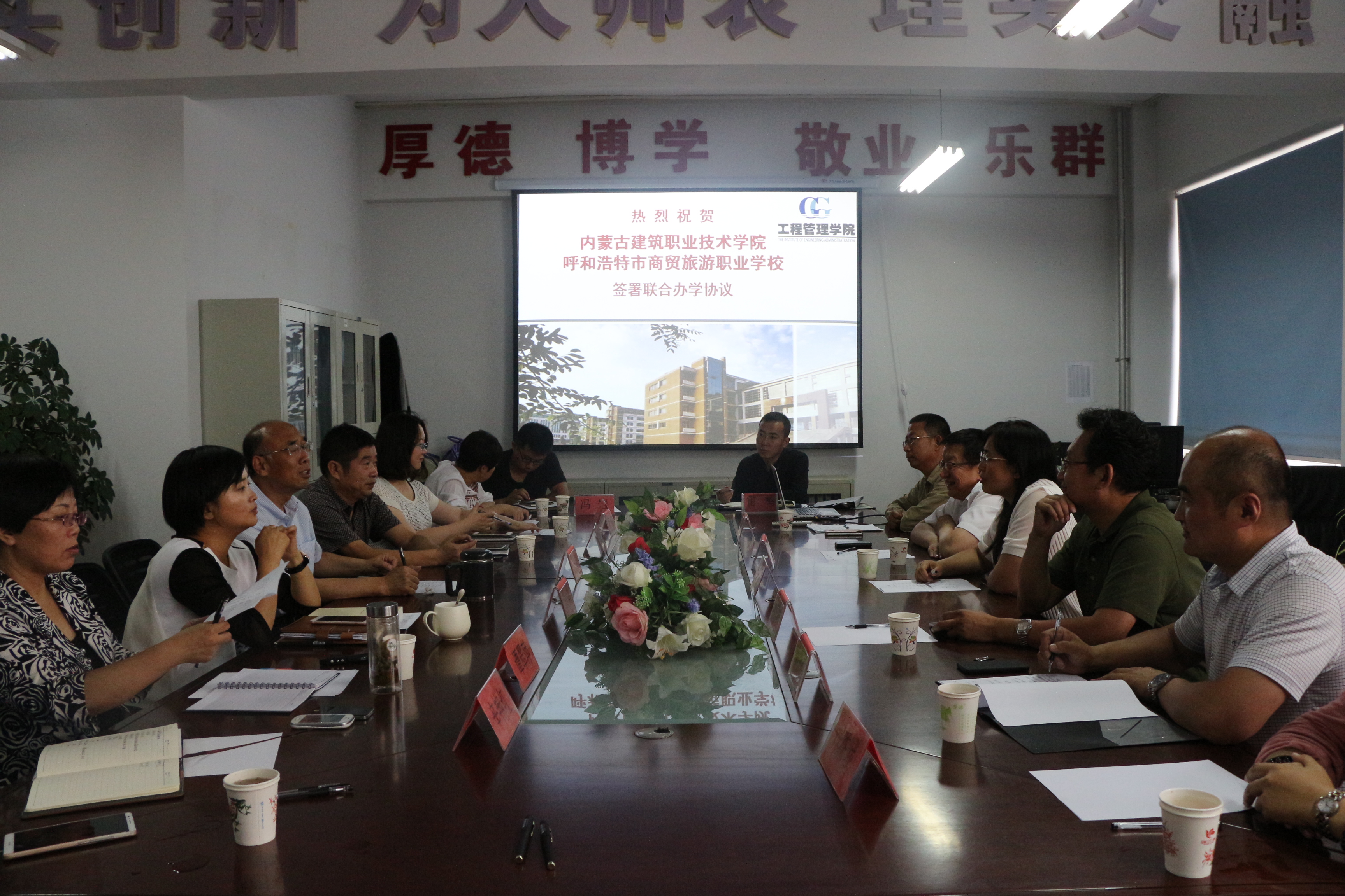 6月15日,乔志远副院长与到访的呼和浩特商贸旅游职业学校程莉莉书记共同签署了《中高职联合办学协议》。签约仪式在1号教学楼2楼办公室举行,由工程管理学院承办。出席人员有呼和浩特商贸旅游职业学校秦志平副校长、尹一丁副校长及教务、招生有关负责人,和我校教务处、工程管理学院、机电与暖通工程学院、经济管理学院有关负责人。