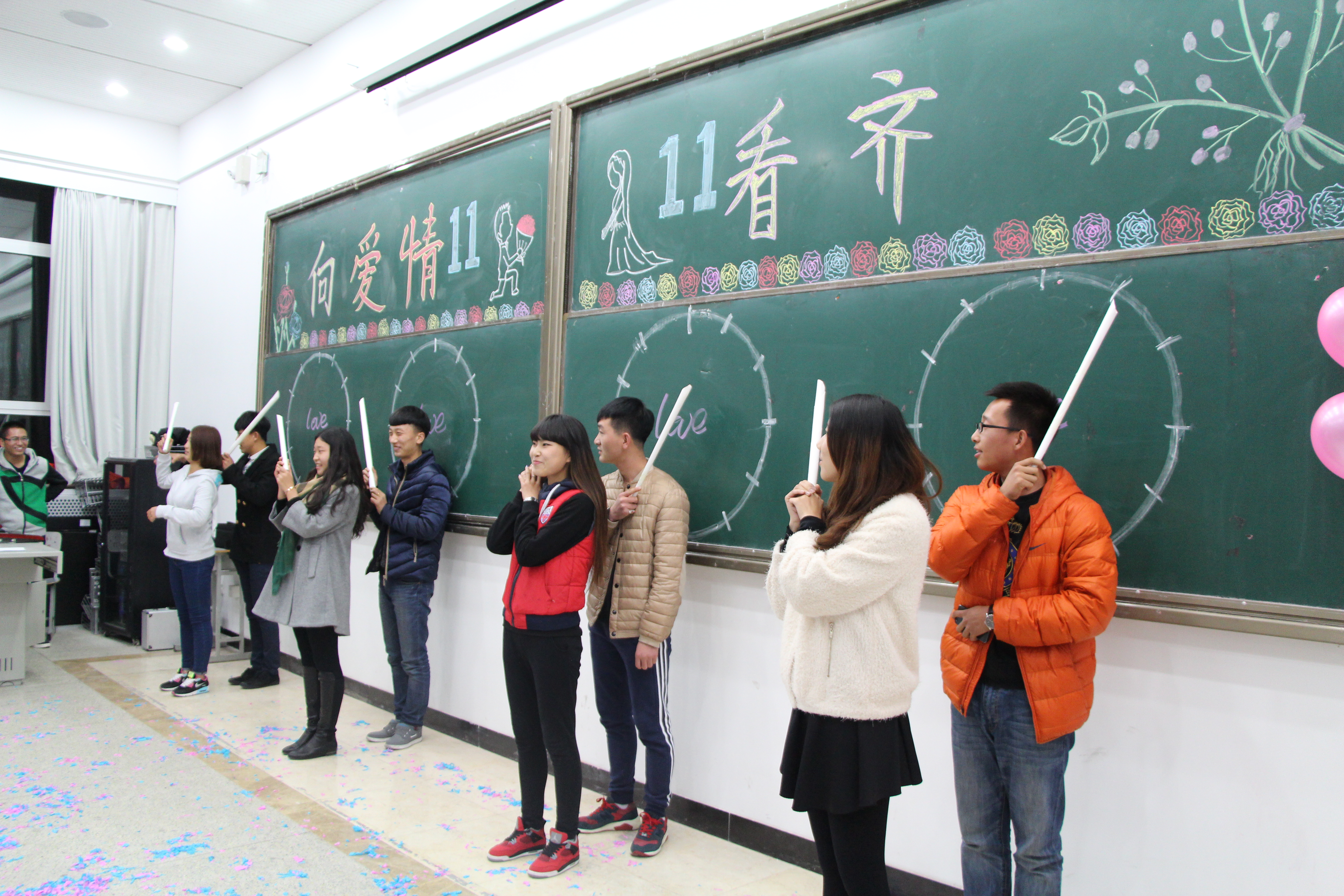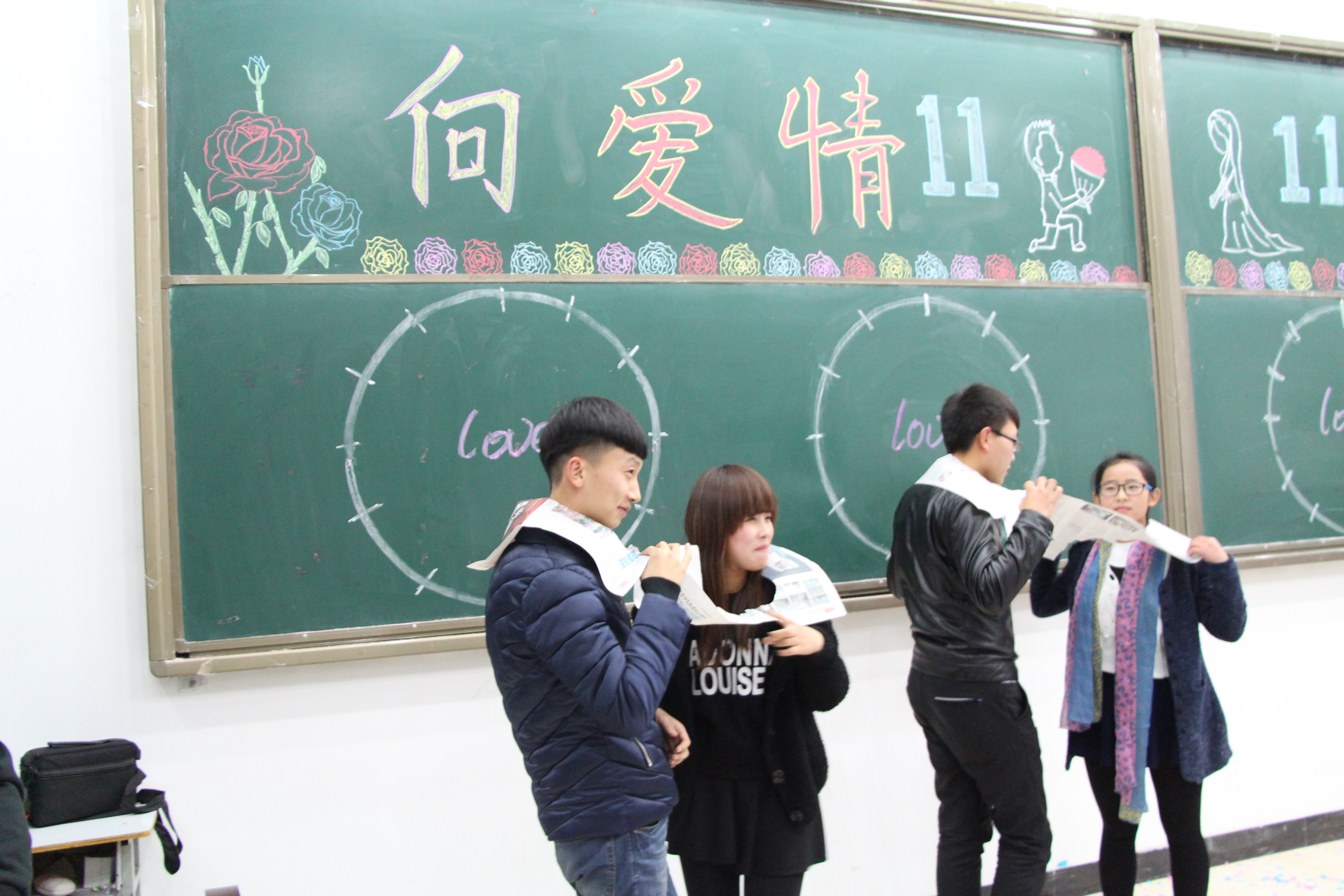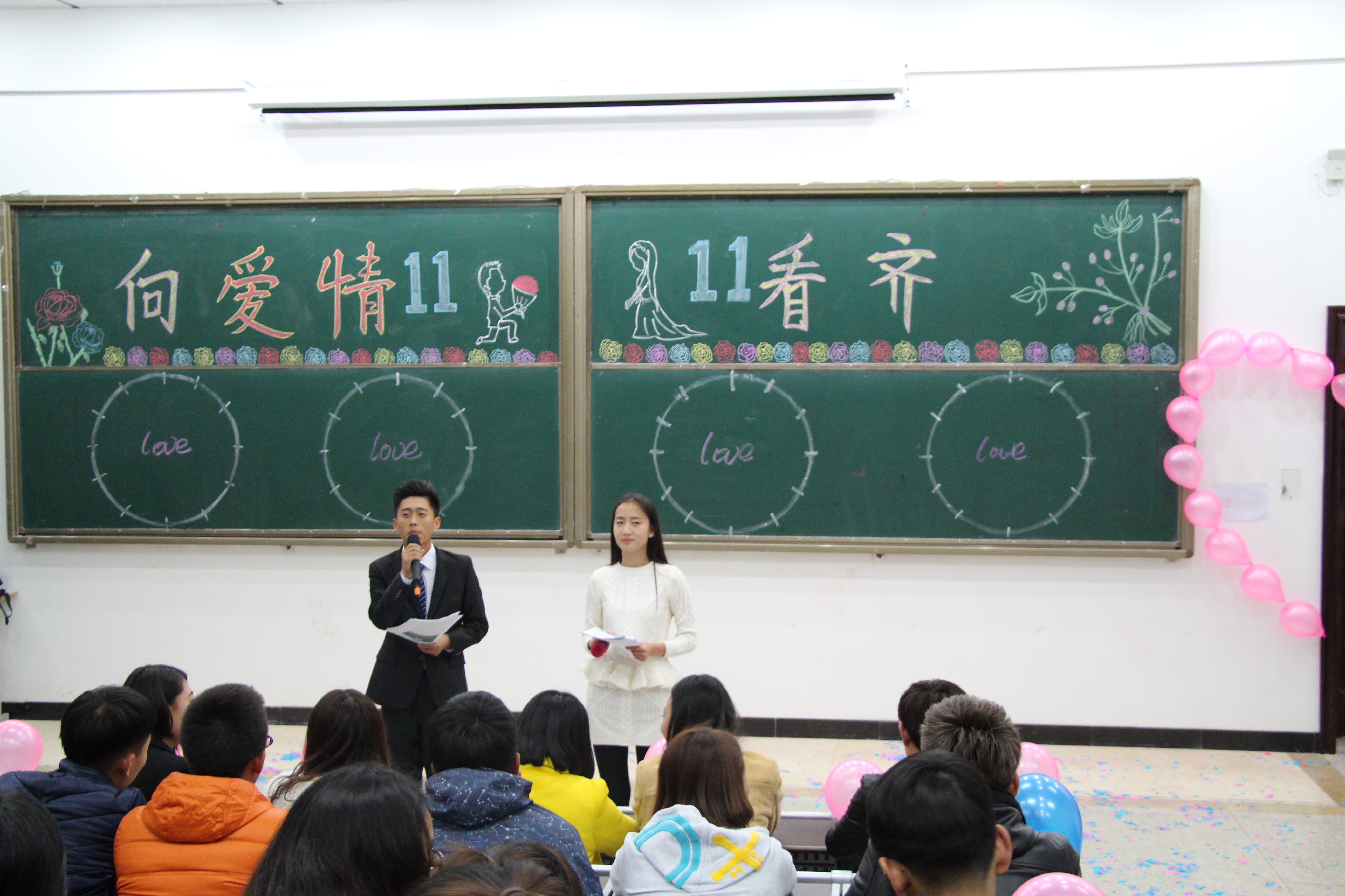 2014年11月11日晚上7:00由我院主办、青春剧组微电影社团、教务处教室管理科承办的“11.11向爱情看齐”主题活动在二、三、四号报告厅成功举行。本次活动特邀各二级学院学生会主席、部长以及学院街舞社成员参加,我院全体大一学生、大二部分学生参加了本次活动。
