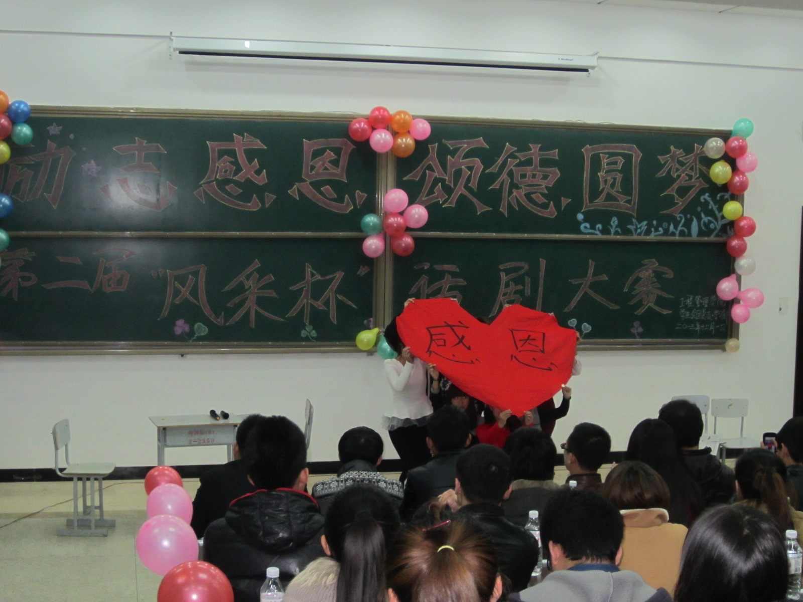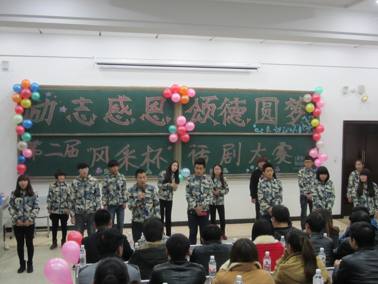 2013年12月1日晚,由工程管理学院团总支举办的“德润建院”系列活动之“风采杯”话剧大赛在第二报告厅举行。本次大赛以“励志感恩,颂德圆梦”为主题。工程管理学院团总支副书记刘国华老师,辅导员马中华老师参加了活动。