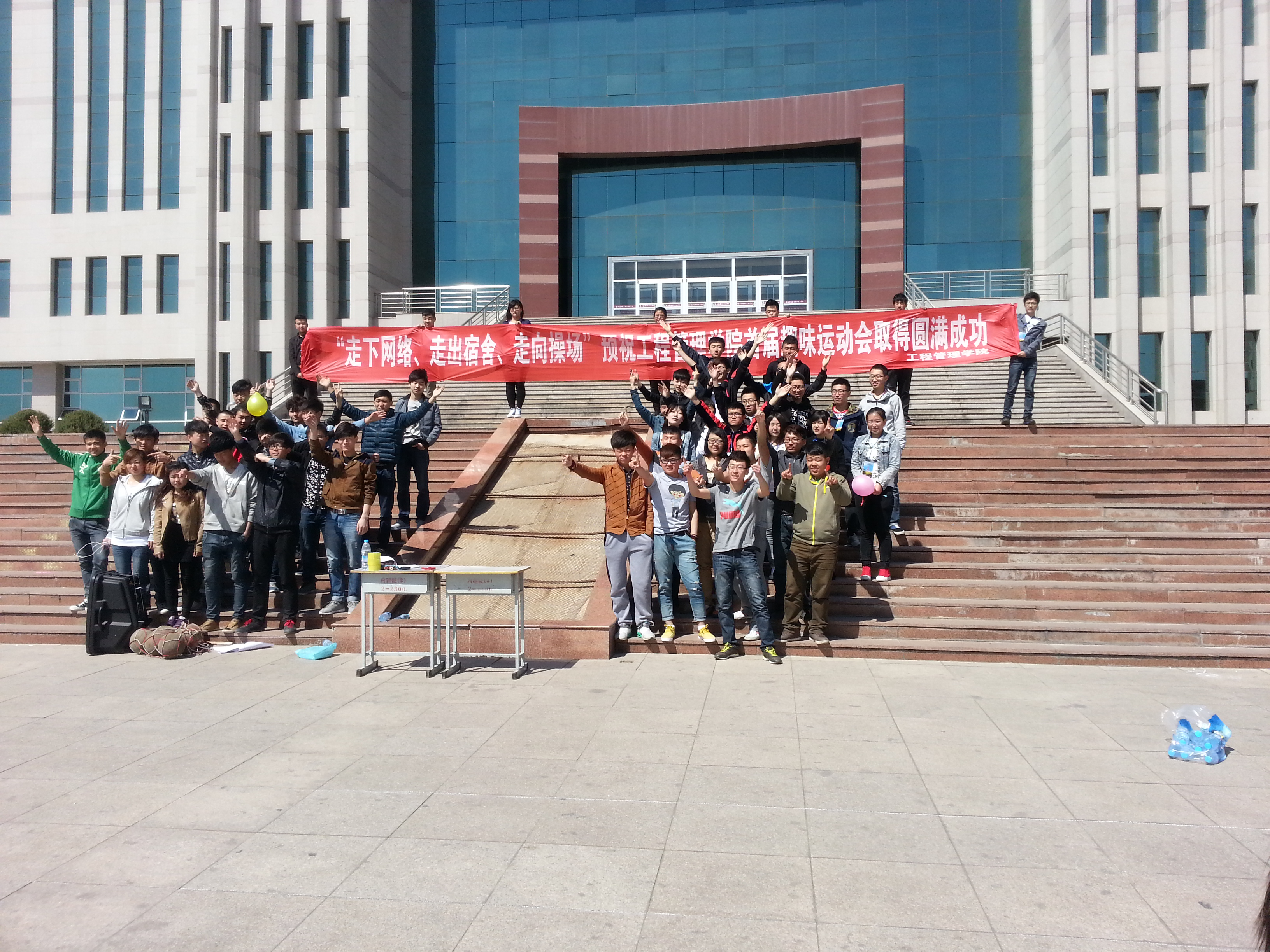 为丰富学生校园生活,强化体育和课外锻炼,促进青少年身心健康,我分院学生会团总支于2014年4月3日中午12:30,在网络中心楼前举行以“走下网络,走出宿舍,走向操场”为主题的趣味运动会,参加此次运动会的有学生会团总支宣传部、网络信息部、组织部成员以及2013级各班级运动员代表。