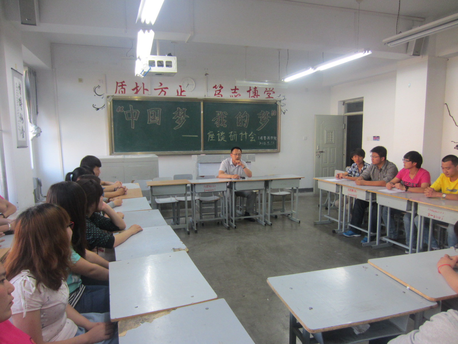 研讨会上,大家围绕“中国梦.我的梦”这个主题踊跃发言,表达自己对中国梦的理解。同学们纷纷表示:“作为当代大学生,实现中国梦,首先要实现自己的梦,并把个人梦想与国家梦想、学院梦想结合起来,志存高远,努力学习科学文化知识,为国家的繁荣富强做出应有的贡献”。