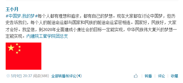 由学工处心理咨询中心主办、工程管理学院学工办承办的“我的梦·中国梦” 心理微博原创大赛于2013年5月25日圆满落幕。