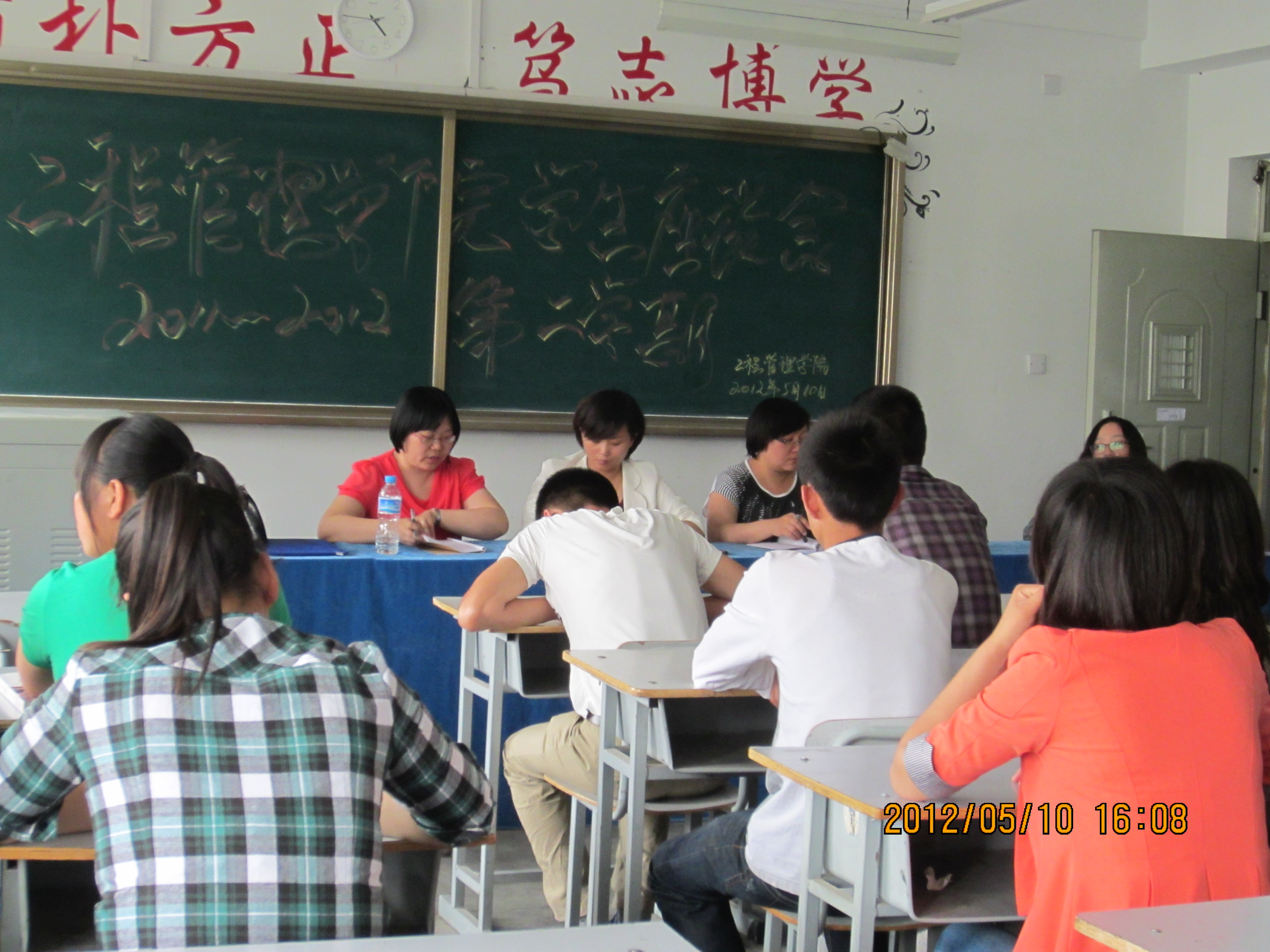 2012年5月10日下午15时30分,我院在一号教学楼202教室召开2011—2012学年第二学期期末学生座谈会。我院副院长斯庆、工程管理教研室主任高娃和工程造价教研室主任褚菁晶出席会议,我院学生代表针对我院教学、生活等方面发表看法并提出建议。