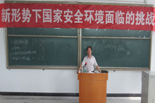 为增长学生见闻,提高学生对时事的判断,提高学生的政治素养。工程管理学院于2012年5月10日下午15时30分在阶梯教室201开展“新形势下国家安全环境面临的挑战”主题讲座。本讲座特邀请内蒙古社会科学院公共管理研究所所长、副教授多智勇担任讲师。工程管理学院党总支书记张爱华、公共课教学部外语教研室主任王婧颖、思政教研室主任白雪、辅导员田原、沈慧、格日乐塔娜等十余名教师与同学们一同参加了本次讲座。