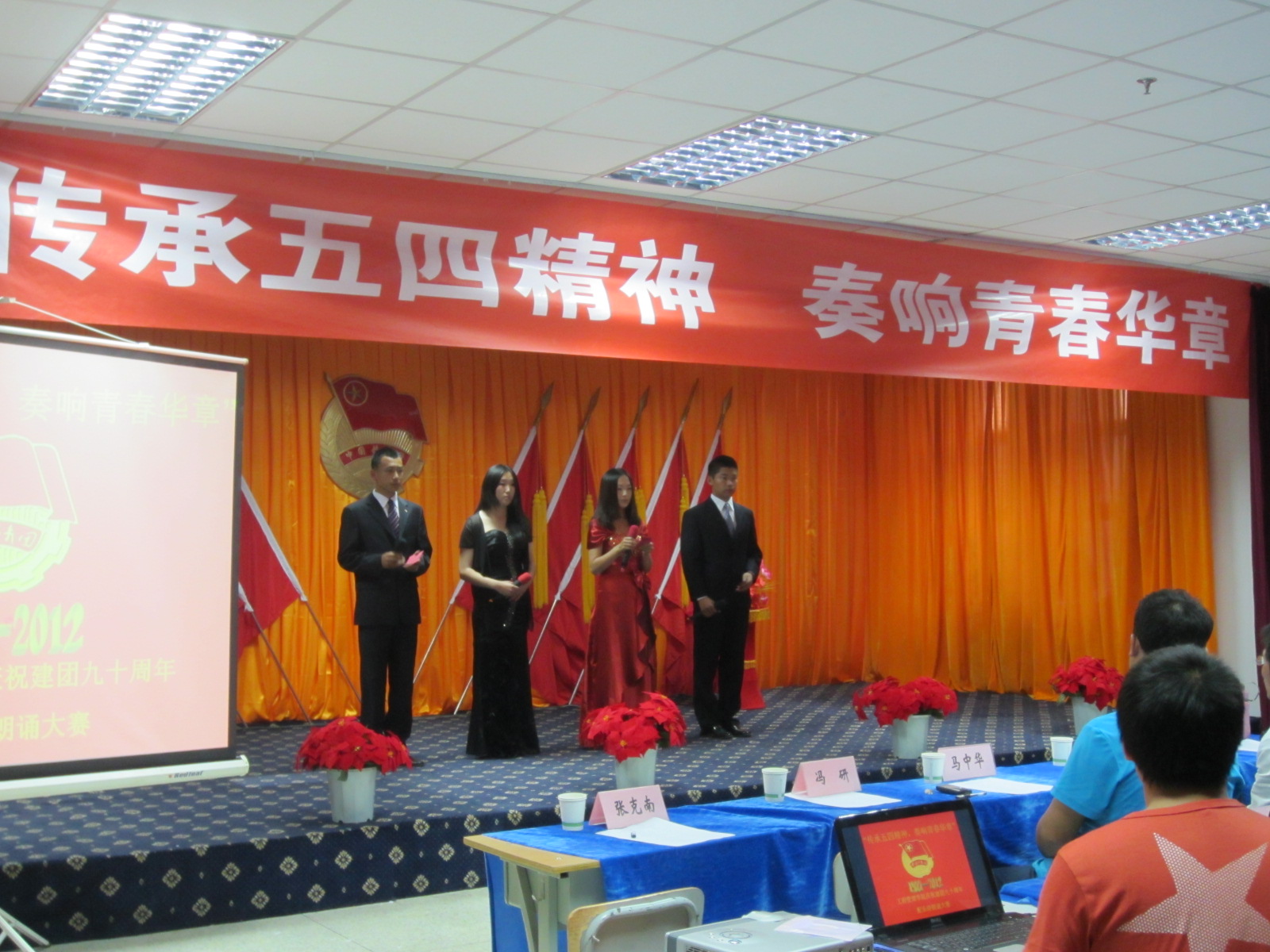 为了纪念中国共青团建团九十周年,鼓励学生自觉弘扬和传承“五四精神”。工程管理学院于2012年5月29日晚7点整在网络中心会议室举办了“传承五四精神,奏响青春华章”庆祝建团90周年配乐诗朗诵大赛,并取得圆满成功。工程管理学院党总支书记张爱华、经济管理学院团总支副书记姜玉来、工程管理学院辅导员马中华等出席了本次大赛。