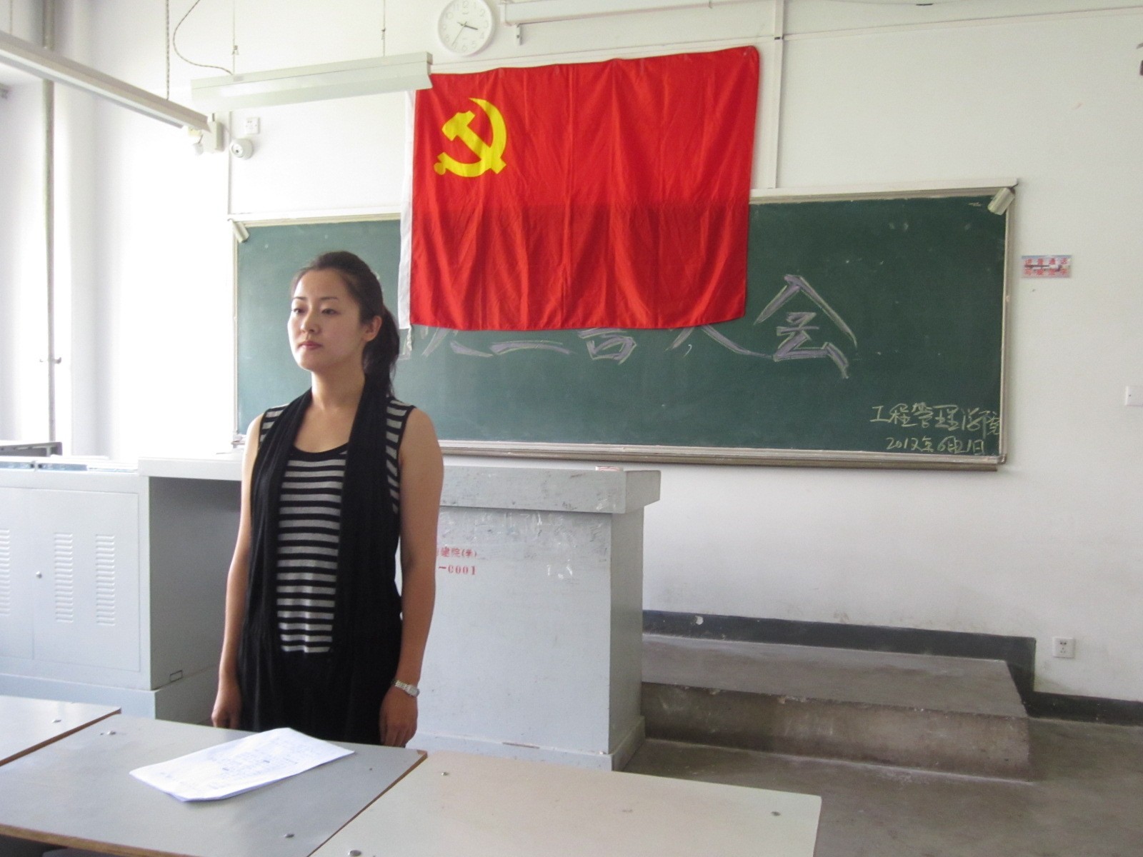 在党的91周年诞辰、党的十八大即将到来之际,6月21日下午3点,工程管理学院入党宣誓仪式在1#教学楼101教室隆重举行。工程管理学院党总支书记张爱华、学生党支部书记刘国华出席大会,会议由赵菁同志主持。