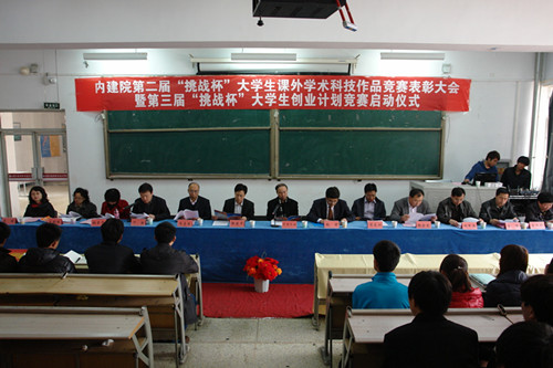 2012年3月22日下午3:00,我院第二届“挑战杯”大学生课外学术科技作品竞赛表彰暨第三届“挑战杯”大学生创业计划竞赛启动仪式在二号教学楼阶梯102教室隆重举行。院党委书记巴音巴图,院长徐建平,院党委副书记张涛,副院长乔志远出席会议。院党委宣传部、院团委、学工处、各二级学院党总支、团总支负责人参加了此次大会。