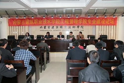 为了迎接学院新一轮人才培养评估工作,加强专业建设和内涵建设,深化课程改革,增进校企合作交流,强化专业特色,提高专业教学质量,我院工程管理学院于2011年10月22日,在六号楼五楼报告厅召开内蒙古建筑职业技术学院工程管理学院专业建设论坛。内蒙古建设工程造价管理总站站长张文效、内蒙古万和工程项目管理有限责任公司总经理陈有平及人力资源部部长杨爱英、内蒙古第二建设股份有限公司副总经理武灵聪、内蒙古中涛招标代理有限责任公司总经理吴玲、呼和浩特职业学院建工学院院长赵建军等校外专家出席。学院乔志远副院长,宣传部副部长宋长江,专业带头人、人事处处长席银花教授,教务处处长郝俊,专业带头人、学院工程管理学院院长邬宏教授与工程造价和工程管理专业建设指导委员会成员及工程管理学院全体教师和学生代表共同参会。