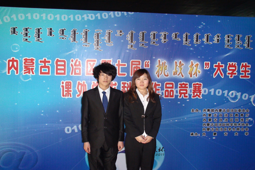 2011年12月2号上午9:30,以“崇尚科学、追求真知、勤奋学习、锐意进取、迎接挑战”为宗旨的内蒙古自治区第七届“挑战杯”大学生课外学术科技作品竞赛开幕式在内蒙古大学本校区学术会议中心9号会议厅隆重召开。我院监理17班学生任志忠、刘健的作品自然景观模拟—“高山流水”荣获铜奖。
