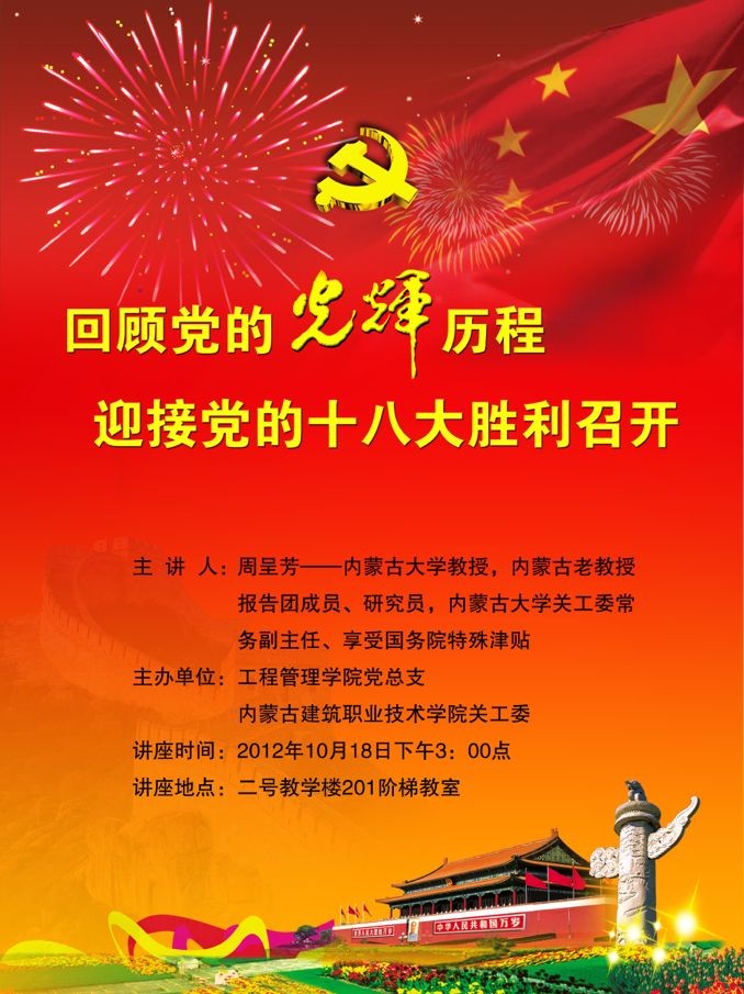 关于举办“回顾党的光辉历程,迎接党的十八大胜利召开”专题讲座的通知