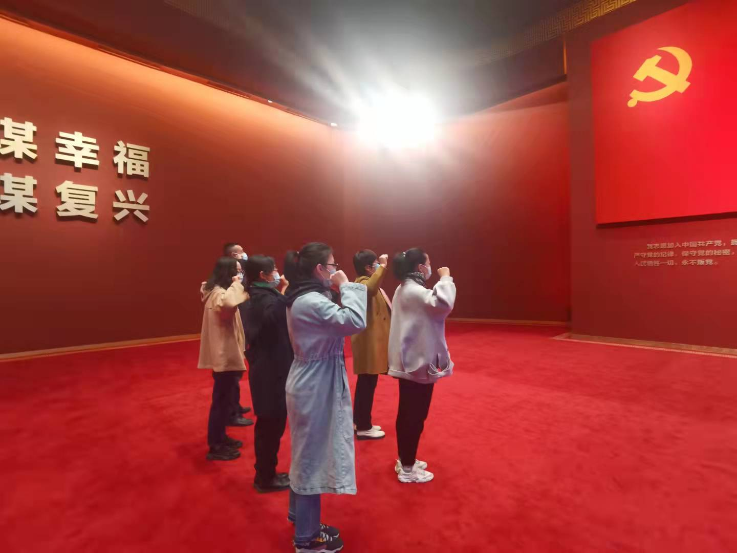 参观结束后,工程造价教研室党支部书记郭文娟同志带领支部全体党员,重温入党誓词。本次参观活动使党员老师们更加直观和深刻地认识到红色政权来之不易、新中国来之不易、中国特色社会主义来之不易,深刻认识到中国共产党为什么能、马克思主义为什么行、中国特色社会主义为什么好,引导广教师党员从党的百年奋斗历史中汲取信心、智慧和奋进力量,坚定为实现中国梦不懈奋斗的理想信念。