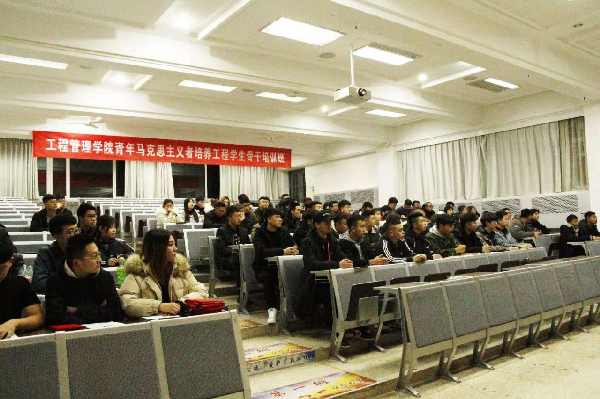 12月3日工程管理学院在二号报告厅举办的“青年马克思主义者培养工程暨工程管理学院青年骨干培训班”开班仪式。在下午7:00由主持人宣布正式开始。
