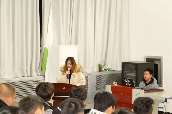 随后由工程管理学院党总支副书记雷鸣老师发表讲话。对《爱国、励志、求真、力行——做中国特色社会主义事业的合格建设者和接班人》中的四个词每个都就行了非常细致的讲解。