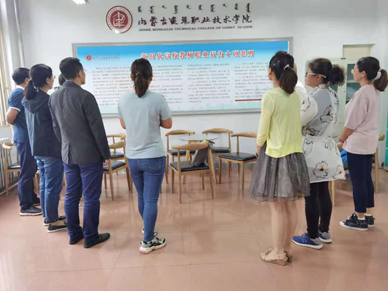 学习和研讨完党史内容,全体教研室老师来到一楼教师休息室,在教研室主任侯文婷的带领下集体学习了新时代高校教师职业行为十项准则。