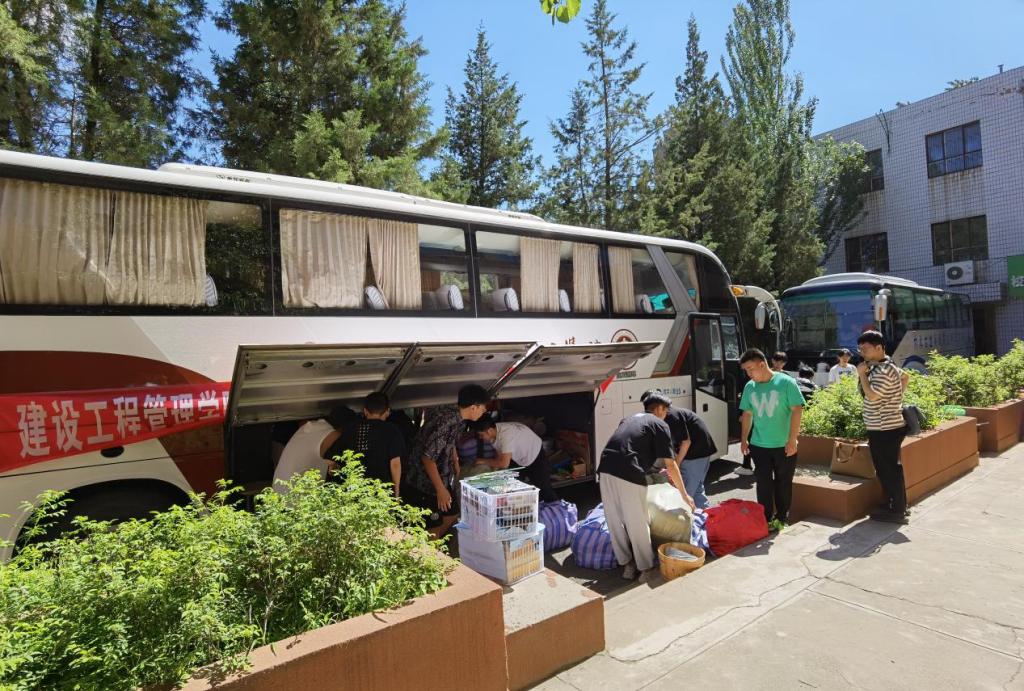 中午14:00学校统一安排车辆将所有学生及行李送至内蒙古财经大学东校区。