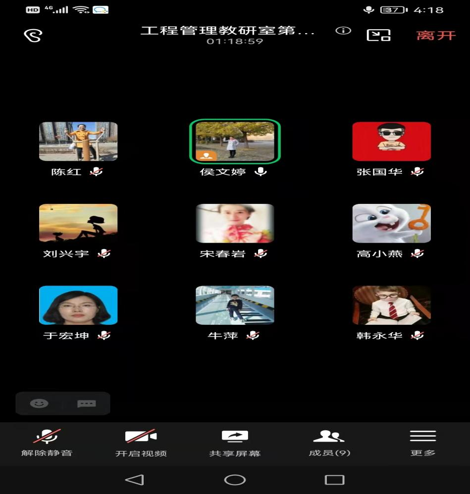 用搏斗聪颖的江山,托起开学的旭日东升;用泛爱善良的季风,吹皱开学的一池浮萍;用弘愿毅力的奔流,掀起开学的海浪翻腾。新学期开学第一周为进一步提高教师队伍的专业素养和教学能力,夯实教师驾驭课堂教学的基本功,2022年3月3日下午15点,久久成人精品工程管理教研室在企业微信召开教研室本学期第1次教学例会。工程管理教研室的老师们按时参加会议,由侯文婷老师主持会议。