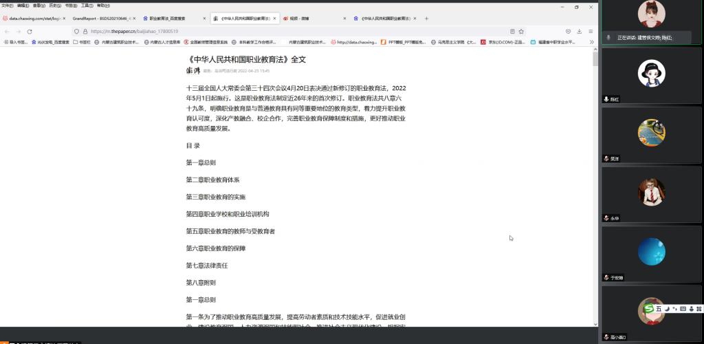 本次会议共有三项内容。一是侯文婷主任带着全体老师学习了5月1日开始实施的《中华人民共和国职业教育法》。