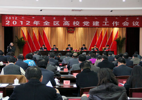 3月14日下午,全区高校党建工作会议在呼和浩特市召开。会议学习贯彻党的十七届六中全会和第二十次全国高校党建工作会议精神,回顾总结2011年工作,研究分析当前高校党建工作新形势,安排部署2012年全区高校党建工作。