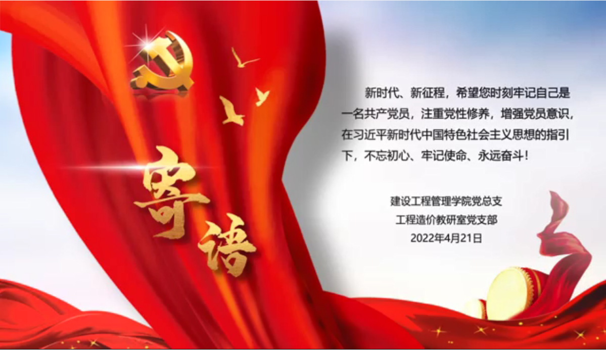 在本次党日活动中,同志们通过学习党的百年奋斗历程,为迎接时代变革,把握时代机遇,应对时代挑战做好思想和行动上的准备。我们的党带领全国人民实现了第一个百年奋斗目标,正向着第二个百年奋斗目标奋勇前进。结合工程造价专业的职业教育及作为高职院校党员教师、一线教师,对于学生的教育应更加注重技能及学习能力的培养,使之更加适应新时代国家对于人才的需求;同时由祝丽思老师带领大家重温了入党誓词,回想着自己当初入党时许下的誓言,时刻提醒自己要不忘初心,牢记使命,要时刻发挥党员的先锋模范作用。