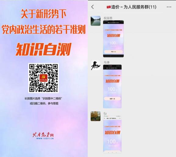 学习后工程造价教研室党支部全体教师进行了学习知识自测。