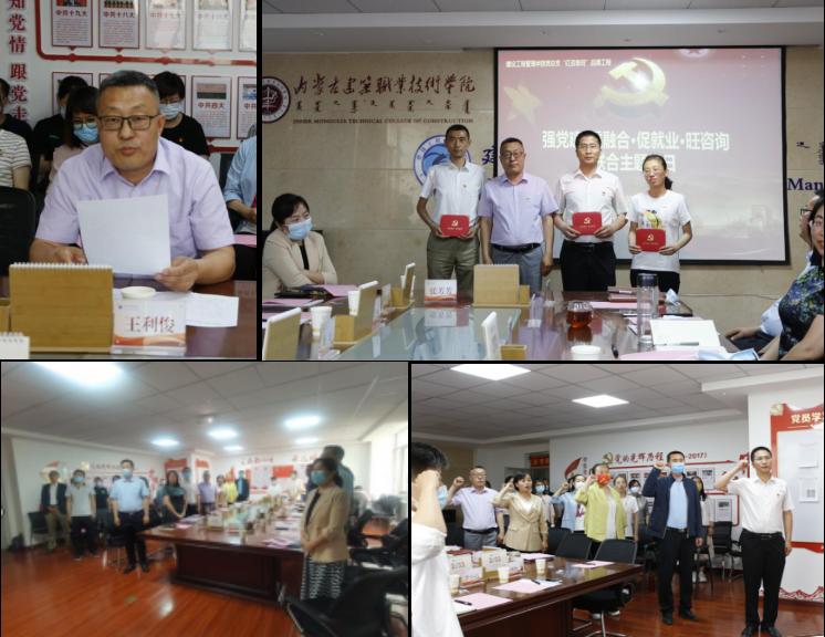 内蒙古迪克工程项目管理有限公司董事长刘新林、内蒙古新天立工程项目管理有限公司董事长康君、内蒙古坤达工程项目管理有限公司董事长李江坤等7家企业代表,学校党委委员、宣传部(精神文明建设办公室)王利俊,学校招生就业处就业指导中心主任霍海波出席活动,学院党总支书记/院长斯庆、副书记姜玉来、纪检委员/副院长岳乌云高娃、副院长辛艳红、工程造价教研室党支部和工程管理教研室党支部书记及全体党员参加活动。