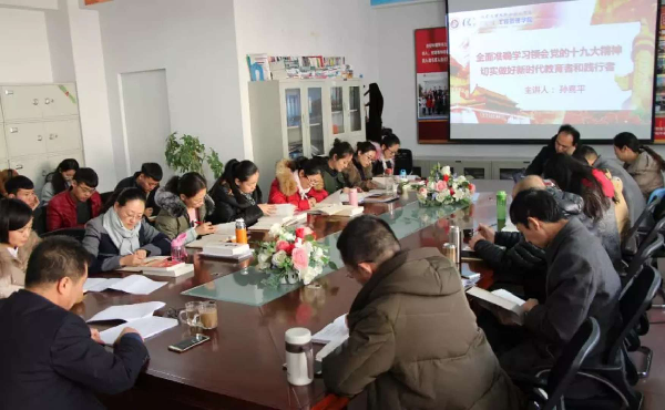 2017年12月21日下午,主题为“全面准确学习领会党的十九大精神,切实做好新时代教育者和践行者”宣讲会在工程管理学院举行,我校党委委员、副校长孙喜平做宣讲报告。会议由工程管理学院党总支副书记斯庆主持,工程管理学院全体教师、学生党员参加了此次报告会。