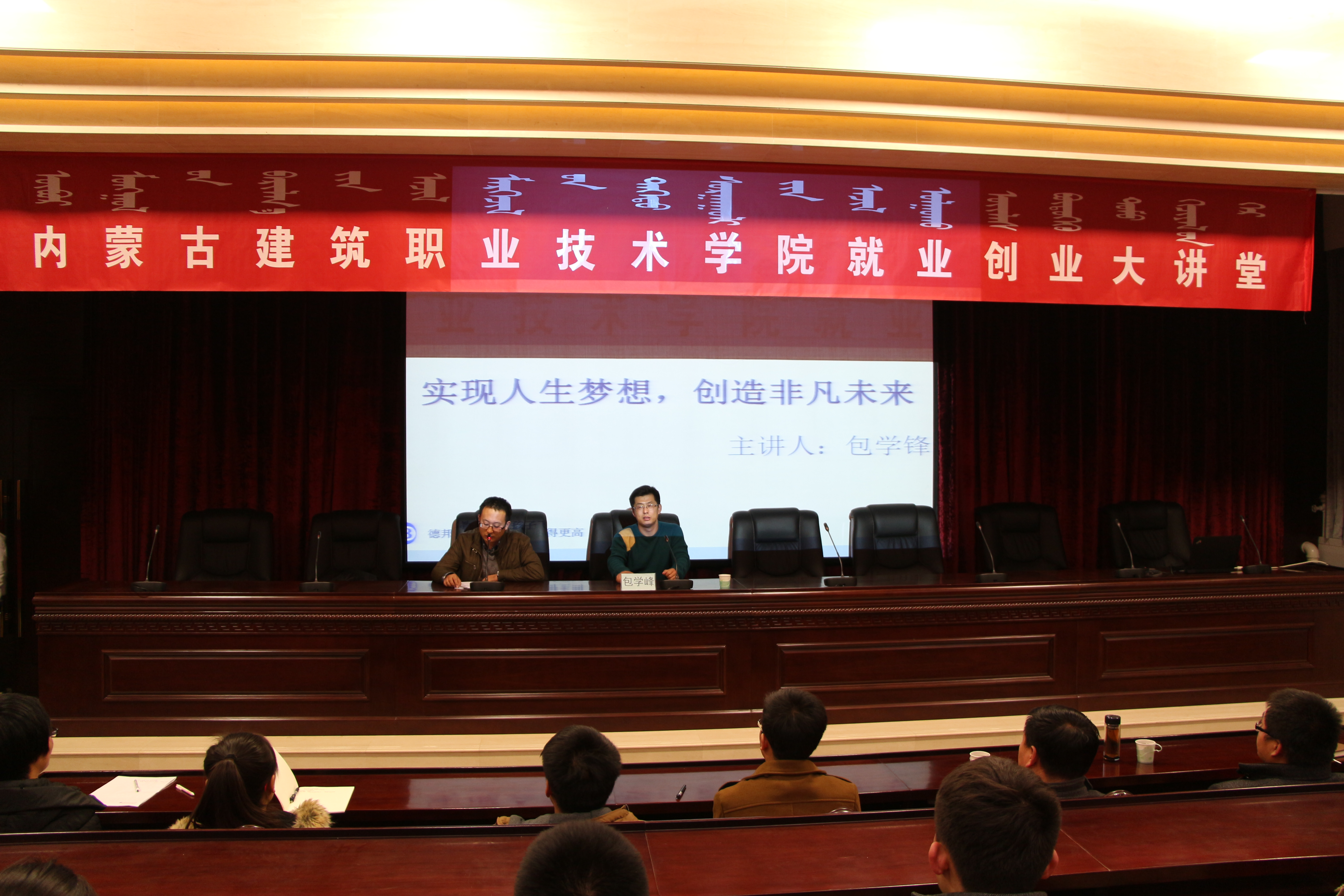 为培养大学生的创新创业精神,提高大学生的创新创业能力。2014年11月20日晚,由学院团委主办,我院团总支、我院“孵梦”大学生创业社团承办的“大学生创新创业系列讲座”在二号教学楼一号报告厅举行。此次讲座特邀内蒙古德邦教育负责人、创业培训师包学锋主讲,题为“实现人生梦想 创造非凡未来”。我院团总支负责老师以及120余名青年学生代表参加讲座。