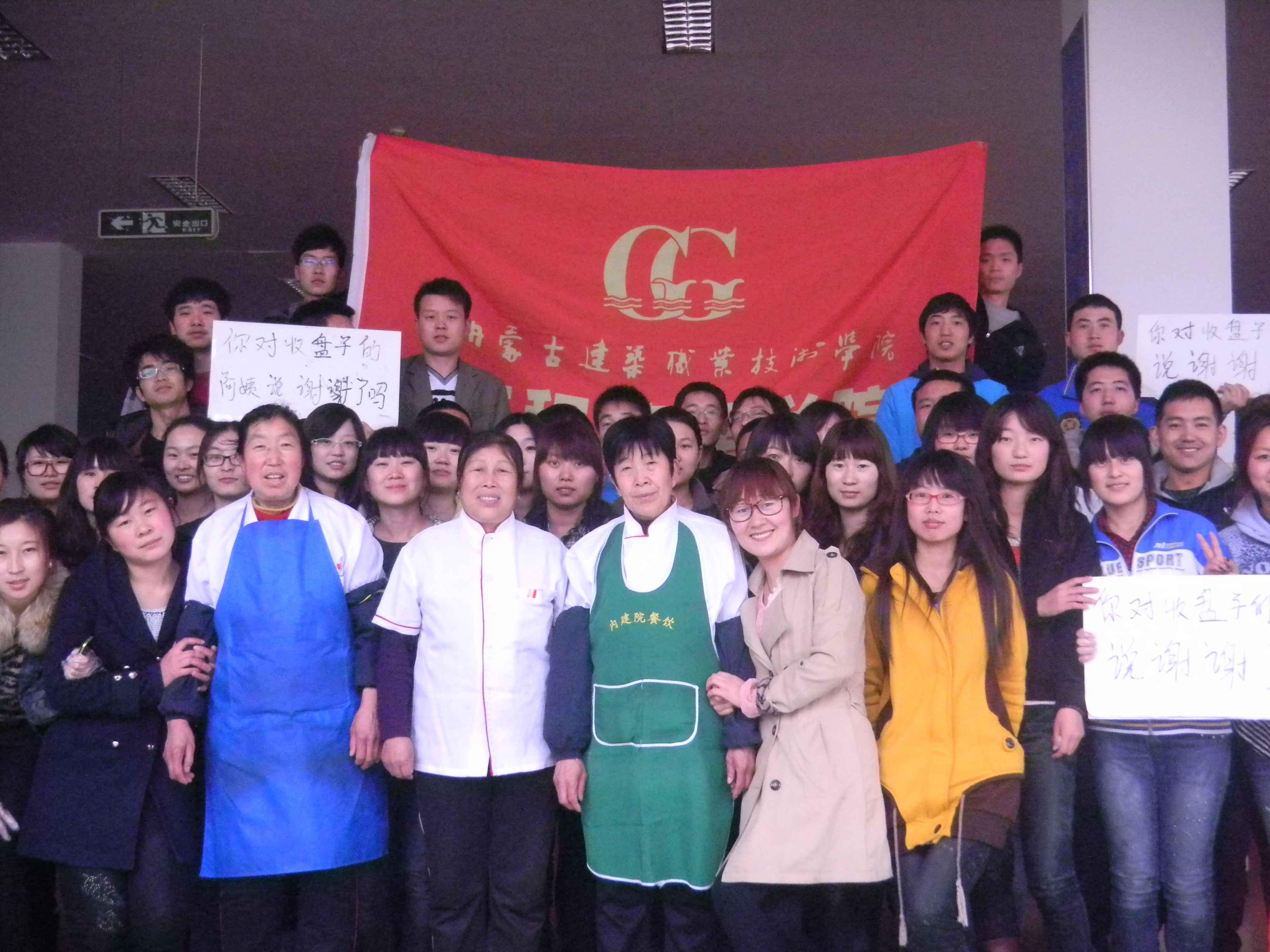 最后,造价1102班的同学们将食堂的桌子、地面打扫的一尘不染,并与食堂工作人员合影留念。
