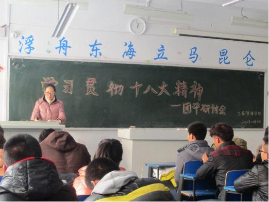 为使学生更好地贯彻落实十八大精神,工程管理学院于2012年12月6日在1号教学楼206教室召开了“学习贯彻十八大精神”团干研讨会,工程管理学院团总支书记云荷惠担任本次会议的主持,辅导员田原作为嘉宾出席本次研讨会,30余名学生干部及团干部参加本次研讨会。