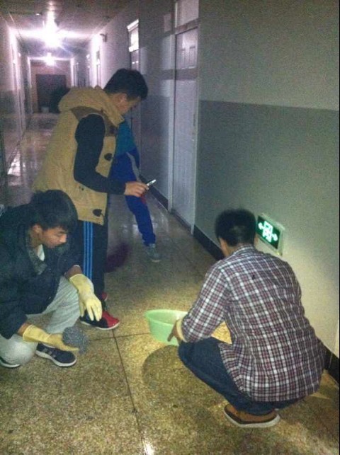 为了美化校园环境,营造良好的学习、生活氛围。工程管理学院工管1301班全体学生于2013年12月3日对宿舍楼进行了彻底的清洁工作。