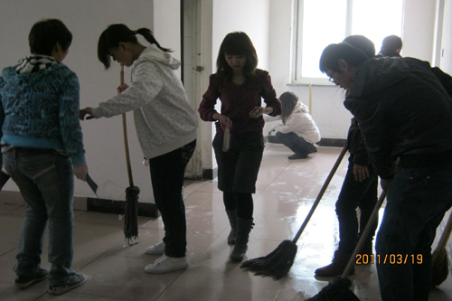 2011年3月19日,我院全体学生会干事,成员及团总支干事,成员集合于2号楼宿舍楼下开展学习雷锋精神的活动。