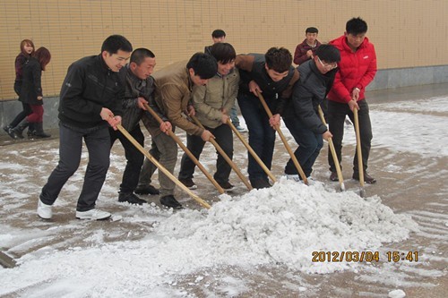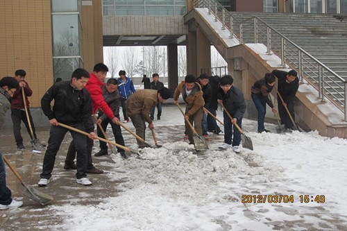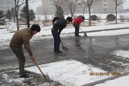 一场瑞雪,在装饰大地,滋润万物的同时,也给广大师生的出行造成诸多不便,为保证我院师生安全出行,在学院学工处、团委的号召下,我分院于2012年3月4日开展了学雷锋活动——清扫校园积雪。