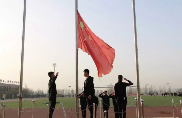运动会正式开始前,国旗班作为展旗方阵走在检阅方阵的最前方,他们高举国旗、校旗,以整齐的步伐,排山倒海般的气势走向主席台。当经过主席台时,齐刷刷的正步,摆头,敬礼,向广大师生展示了良好的精神风貌。