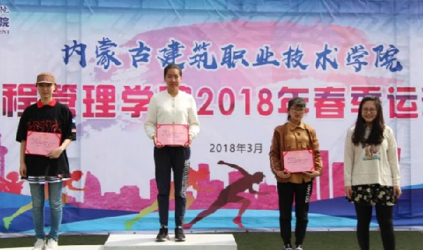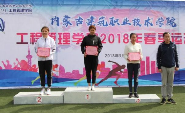 女子100米:第一名造价1702班齐新宇 第二名造价1702包艳梅 第三名监理1702刘洋