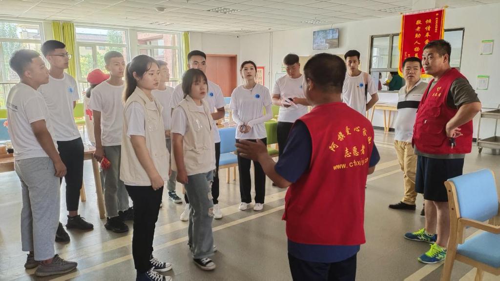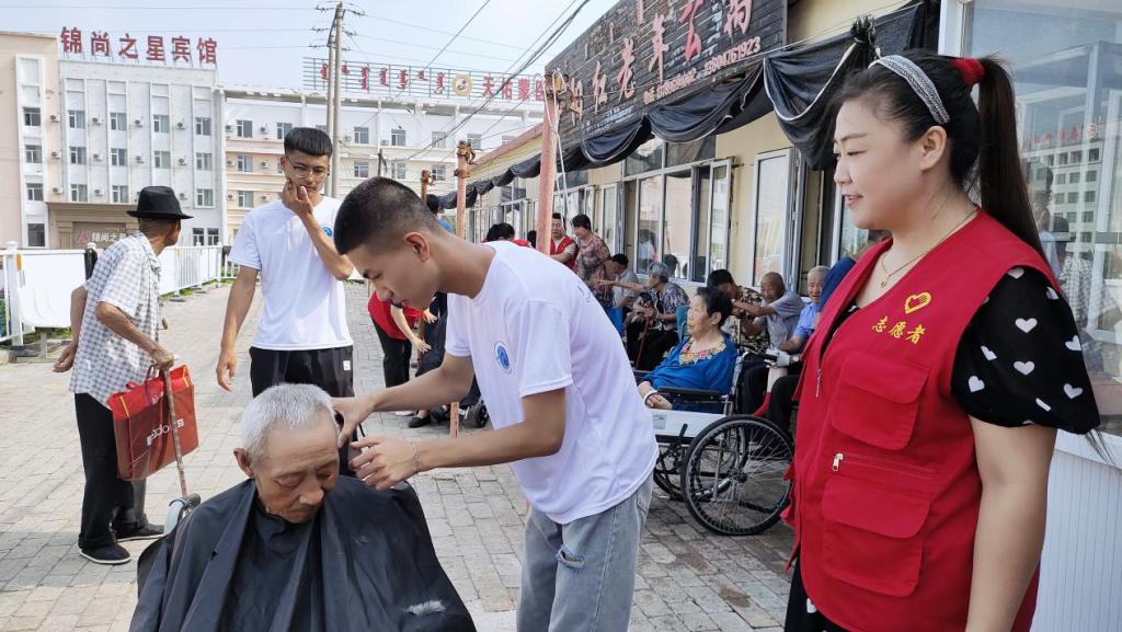 7月21日,服务队与阿鲁科尔沁旗爱心家园志愿者协会到夕阳红养老院和寿康颐养院(学校校外实习基地)进行爱心服务,为老人剪头发、陪老人聊天、给老人发放餐食、打扫卫生等。尊重和关爱老人,是青少年义不容辞的社会责任。志愿服务给老年人和年轻人带来不同的感受和帮助。