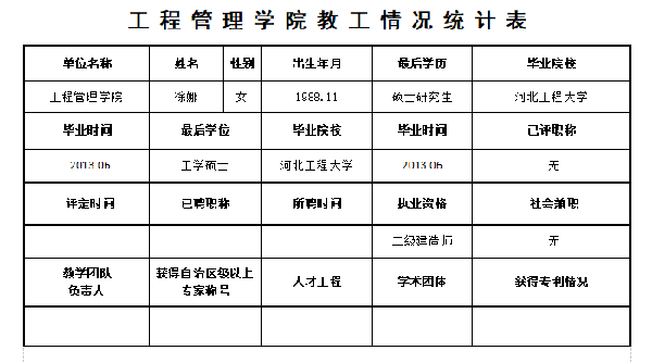 徐娜,女,2013年毕业于河北工程大学管理科学与工程管理专业,2014年12月到内蒙古建筑职业技术学院工作。