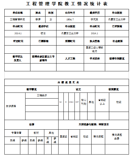 2011.09—2014.01 内蒙古工业大学土木工程学院,工程管理管理专业 工程管理硕士.