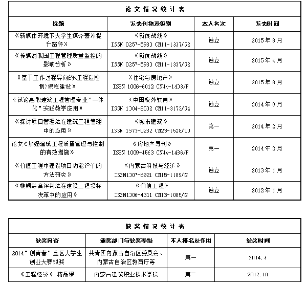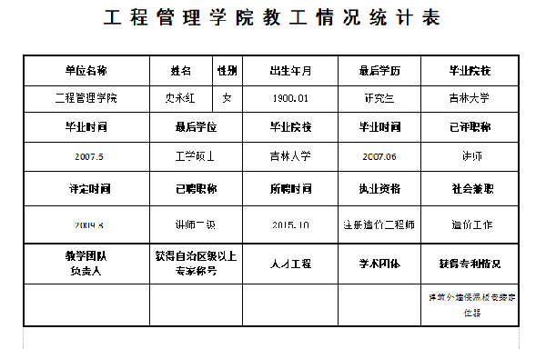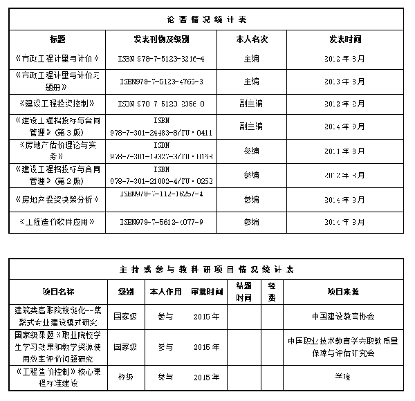 1980年1月。职称:讲师。主要讲授课程:《市政工程计与计价》、《建筑工程计量与计价》、《建设工程投资控制》。