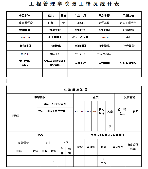 我叫白静,我的家乡在锡林郭勒盟,大学就读于湖北武汉工程大学工程管理专业,于2006年进入内蒙古建筑职业技术学院,目前的职业是工程管理学院的一名教师。