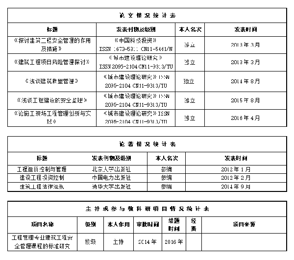 在内蒙古建筑职业技术学院从教以来主要教授了“建筑工程安全管理”、“建筑工程施工质量管理”和“建筑工程项目管理”等课程。除此以外也积极的参加学校及二级学院的各种教学和其他活动,在这就不做详细的说明了。