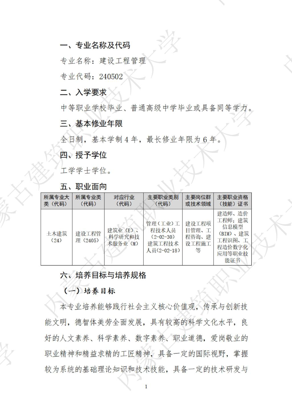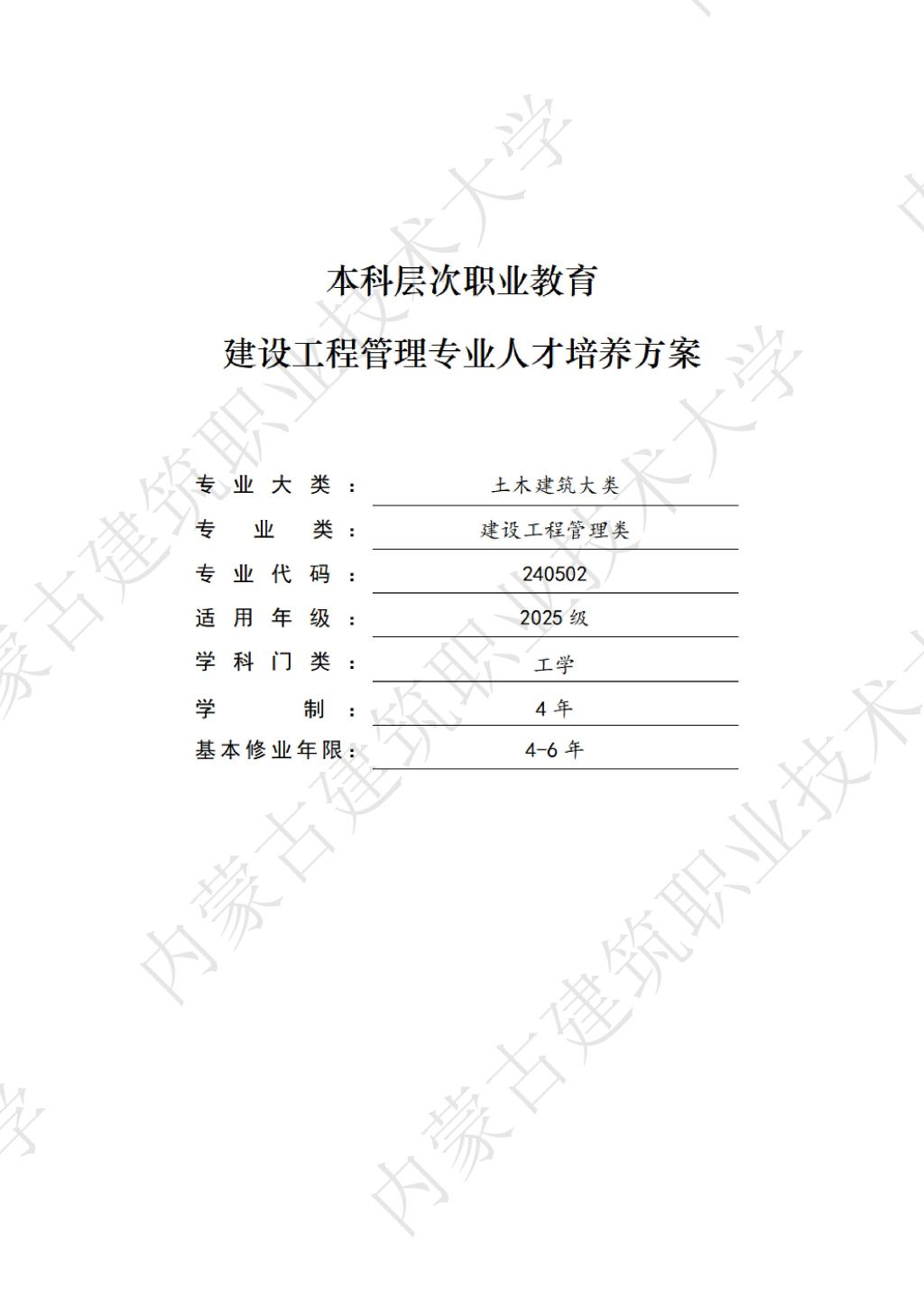 建设工程管理专业本科层次人才培养方案