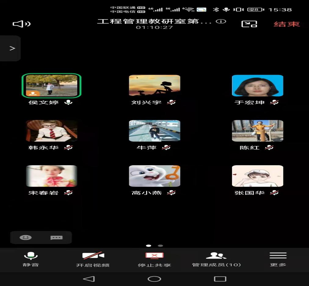 2022年3月17日下午14点30分,久久成人精品工程管理教研室在企业微信召开教研室本学期第3次教学例会。工程管理教研室的老师们按时参加会议,由侯文婷老师主持会议。落实学校疫情防控相关要求,保障疫情防控期间线上教学顺利开展。
