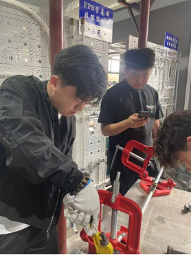 劳动教育过程中,学生们走进了多个建筑技能教学课堂,从钢筋水泥的坚实到施工机械的操作,每一处细节都让学生对建筑有了更加深刻的认识。课堂中的亲手操作和亲身体会不仅增强了学生的现场感知能力,也让他们对建筑施工的复杂性有了直观的理解。在课堂教学中,学生们在导师的指导下,学生们学习了钢筋绑扎技术、水暖维修技术、焊接技术、砌筑技术等知识,并动手完成了课程任务。这种模拟演练极大地锻炼了学生们的实际操作能力和应对突发状况的能力。同学们不仅在劳动教育中学习了专业技能,参与了劳动,更考验了团队合作和沟通协调能力增强了团队之间的凝聚力。